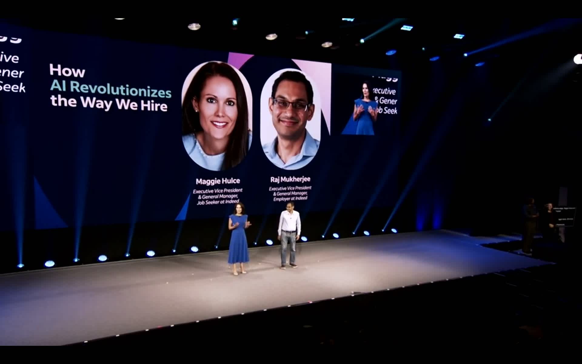 Executive Vice President and General Manager of Enterprise Maggie Hulce and Executive Vice President and General Manager for Employer Raj Mukherjee at Indeed