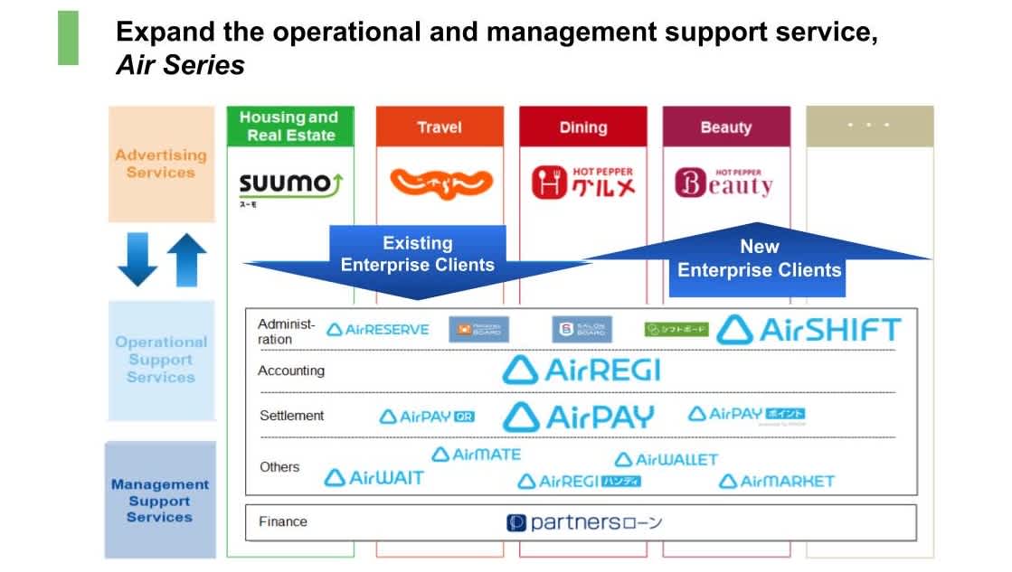 Air Series, a key component in our offered operational and management support services, is being expanded to support enterprise clients' administrative functions such as accounting, settlement, reception management, and reservation management.