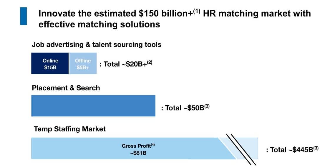 The "HR matching market"*¹ in particular is where we will use technology to accelerate innovation and dramatically improve matching efficiency.Hiring and recruiting processes remain inefficient for companies, large and small, and we aim to leverage data and technology to solve this problem.