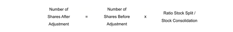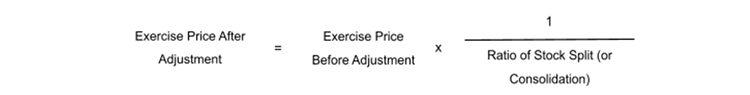 If the Company carries out a stock split or stock consolidation after the Allotment Date, the Exercise Price will be adjusted in accordance with the following formula, and any fraction less than one yen resulting from the adjustment shall be rounded up to the nearest whole yen.