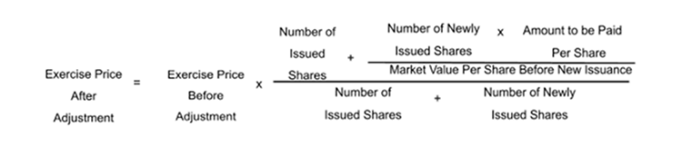 In addition to the above, if after the Allotment Date, the Company carries out a merger or company split, or an event that requires an adjustment of the Exercise Price otherwise occurs, the Company may appropriately adjust the Exercise Price to a reasonable extent.