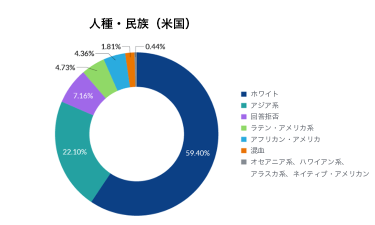 | オセアニア系、ハワイアン系、アラスカ系、ネイティブ・アメリカン(米国) | 0.4% | 1% |