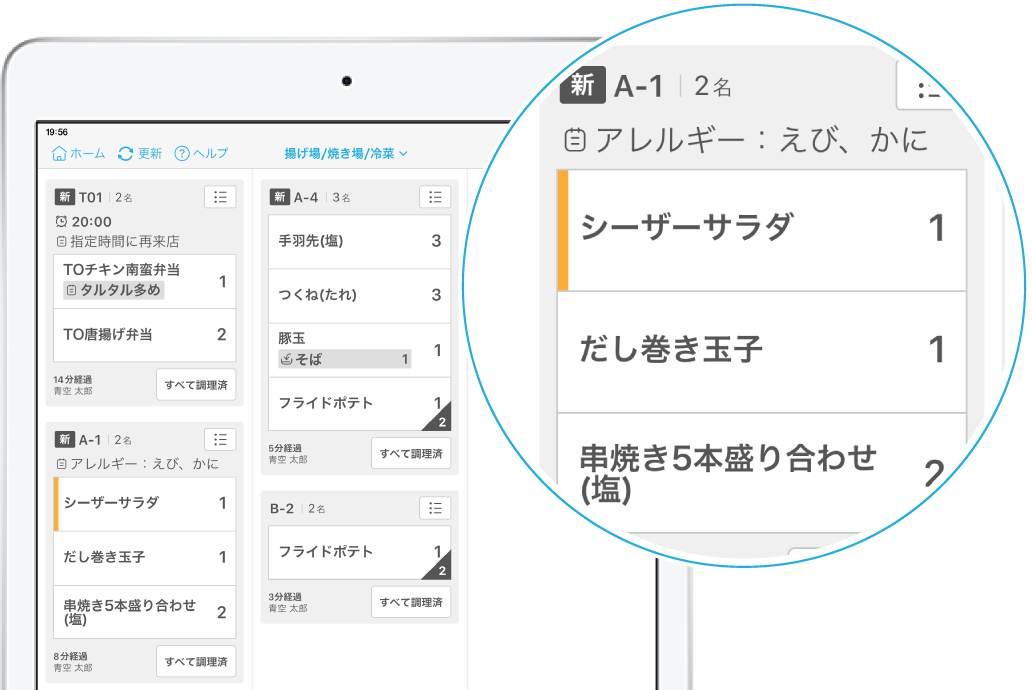 注文・調理・配膳をカンタンにするオーダーエントリーシステム『Airレジ ハンディ』の新機能として開発された「キッチンモニター