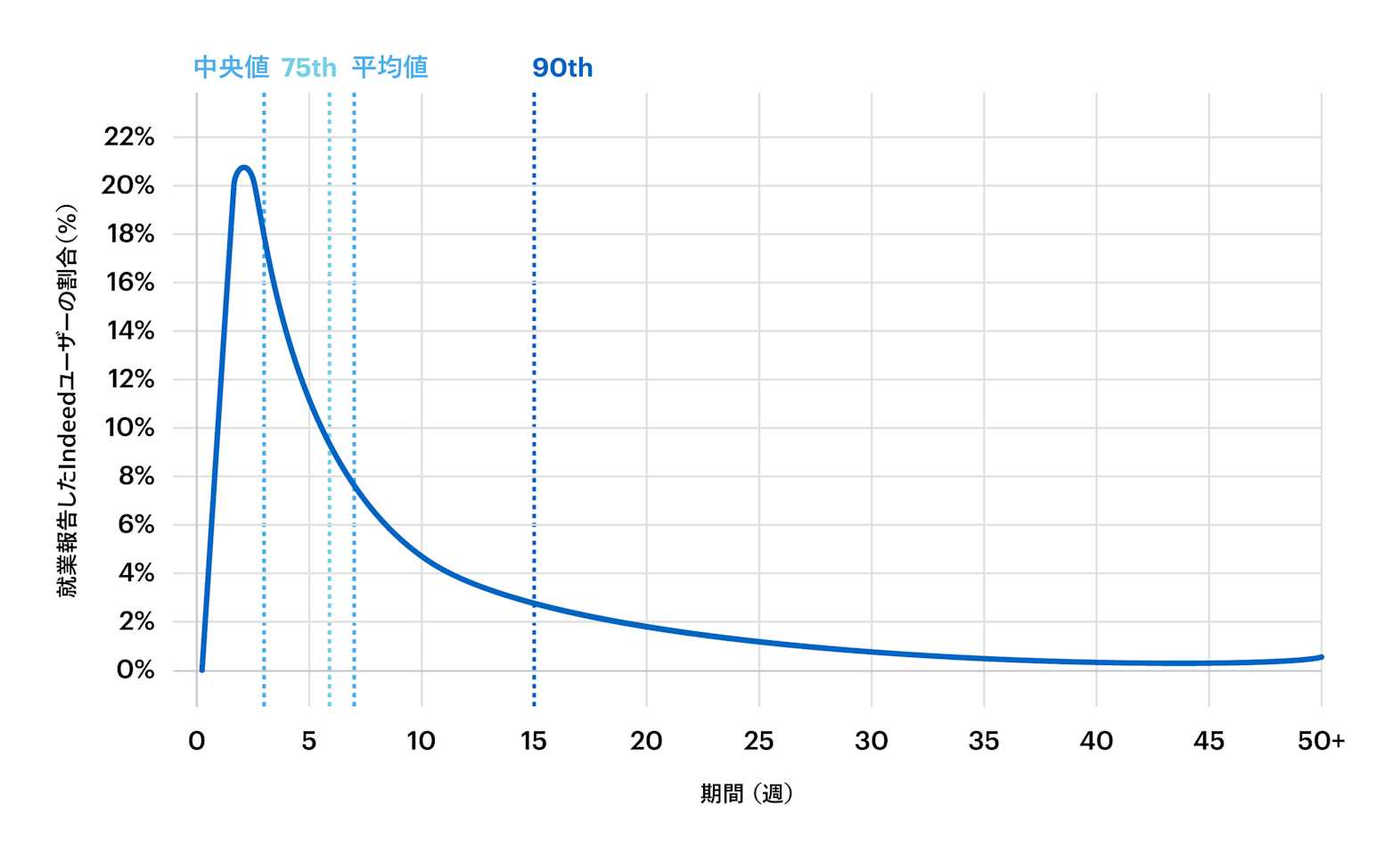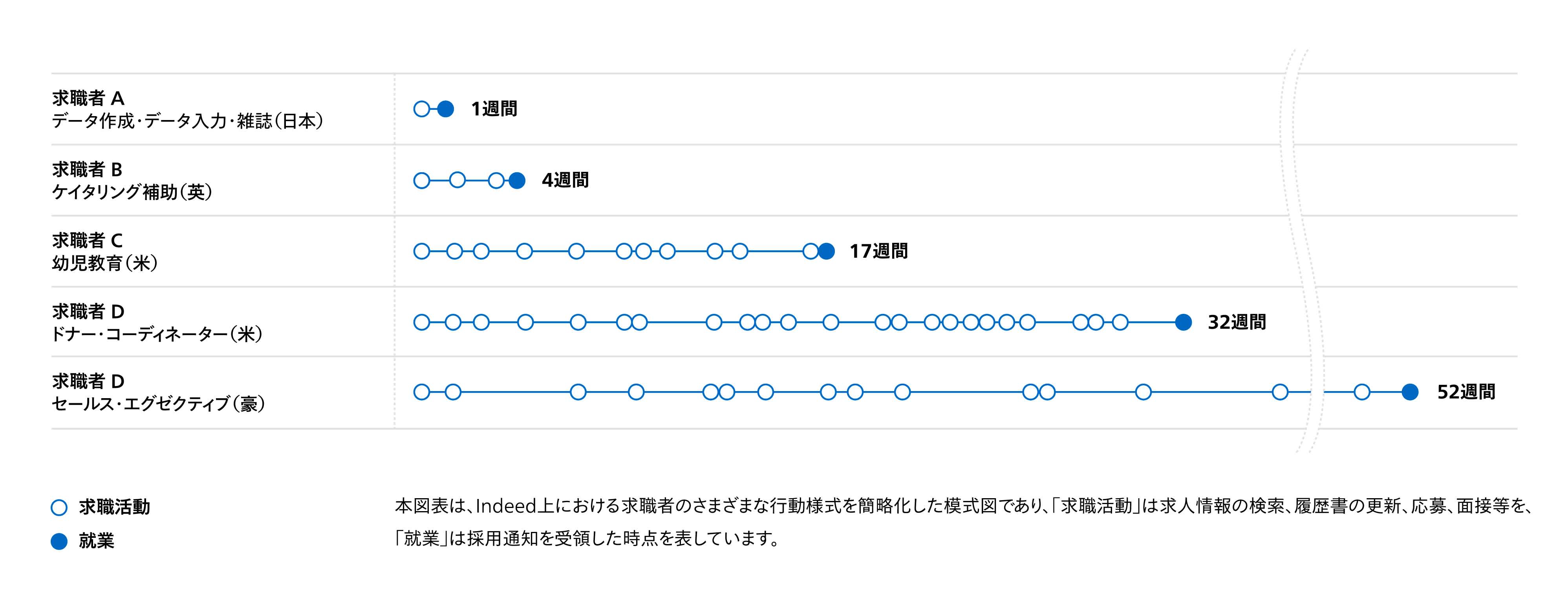 Indeed上では約15週間で90%の求職者が就業していた