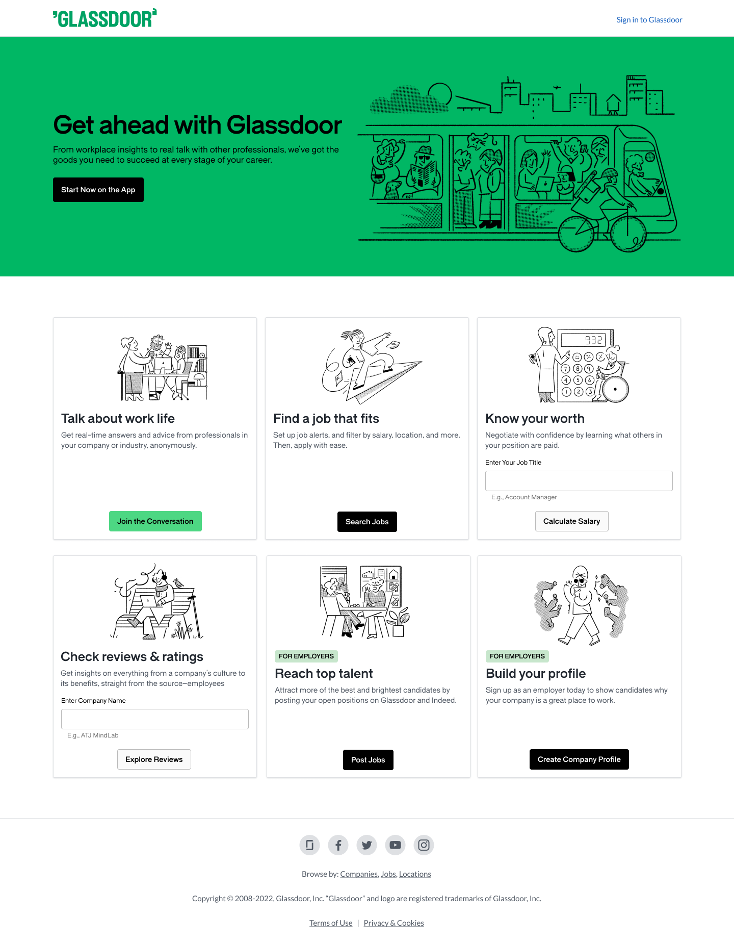 デザインも一新されたGlassdoorのウェブサイト