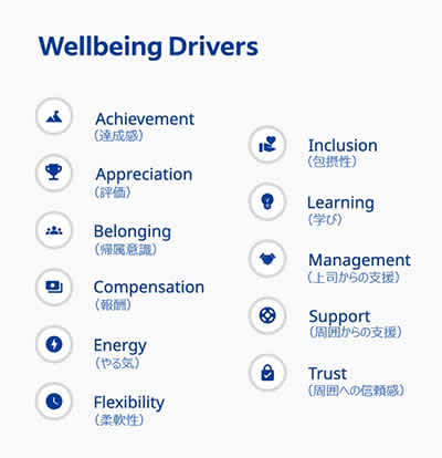 ウェルビーイングの4つの結果指標に影響を及ぼす11のドライバー項目