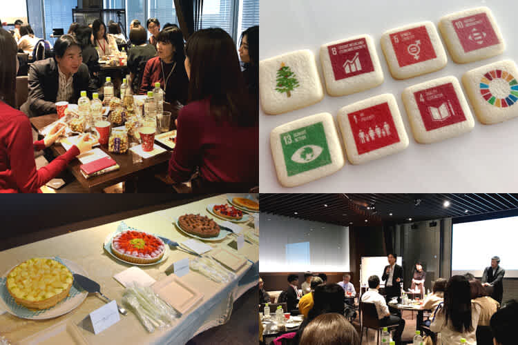 当日は、前回も好評だったキルフェボンの季節のタルトと、リクルートグループが重点的に取り組むSDGsのロゴが描かれたクッキーが並び、所属会社やミッションも異なる従業員同士でリクルートグループらしさについて、改めて気づきを得る場になったという声も出ました。また、池内への質問も多く集まり大いに盛り上がりました。